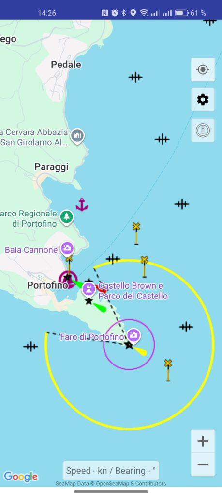 Die Sea Maps App erlaubt die Betrachtung des OpenSeaMap Layers mit nautischen Informationen als Overlay über den Google Maps Karten. Optional kann die Karte auf die aktuelle Position zentriert werden bzw. der aktuellen Position folgen.
